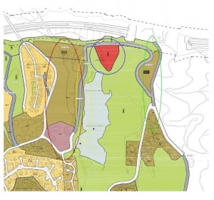 1.- Que el ARI NA 2, zona oeste, se considere como no urbanizable. En el plano círculo rojo.