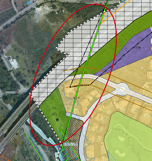 Como se puede observar en la imágenes del PGOU que ha aportado OSP, los terrenos en cuestión se encuentran justo en el paso entre La Quinta y Nueva Andalucía, y una gran extensión de esos terrenos o están debajo de la autopista, están afectados por la zona de servidumbre de la propia autopista o la zona de servidumbre del río Guadaiza. “Ademas –añade Piña- casi todo el terreno está calificado en el PGOU como parques y jardines, mientras que el terreno que recibe Benahavis tiene mansiones y zonas urbanizadas, concretamente 11 parcelas en las que hay construidas siete mansiones”.