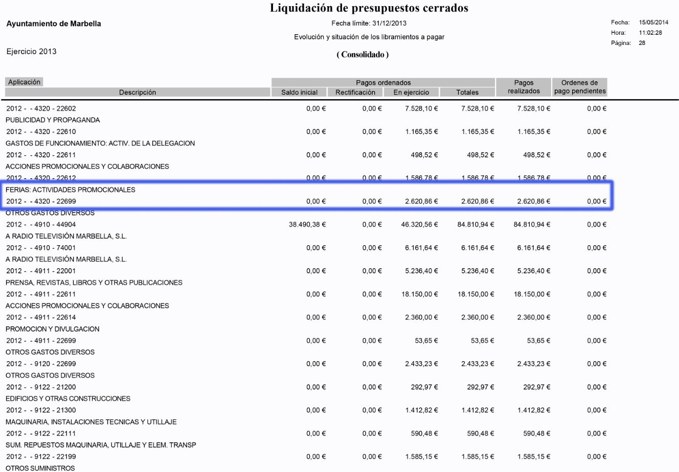 En la liquidación del presupuesto del pasado ejercicio, se puede ver que de los 80.000€ presupuestados para actividades promocionales turísticas solo se ha gastado la “ridícula” cantidad de 2620€.