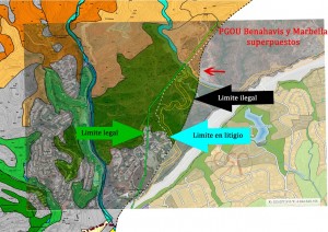 OSP ha detectado que en los planos cartográficos de la Dirección General del Catastro existe una línea de termino municipal entre los municipio de Marbella/San Pedro Alcántara y de Benahavis, concretamente en las zonas denominadas Urbanización Casablanca y Real de la Quinta, que “claramente no se corresponde ni con la oficial, ni con el límite que actualmente está en situación de alteración”.